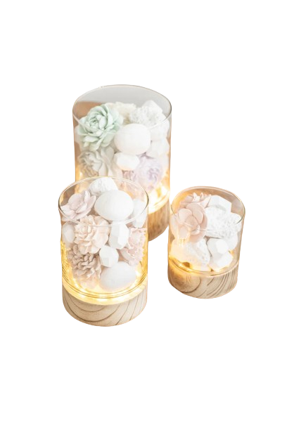 Tubo de Vidro com Mix de Peças + Base em Madeira